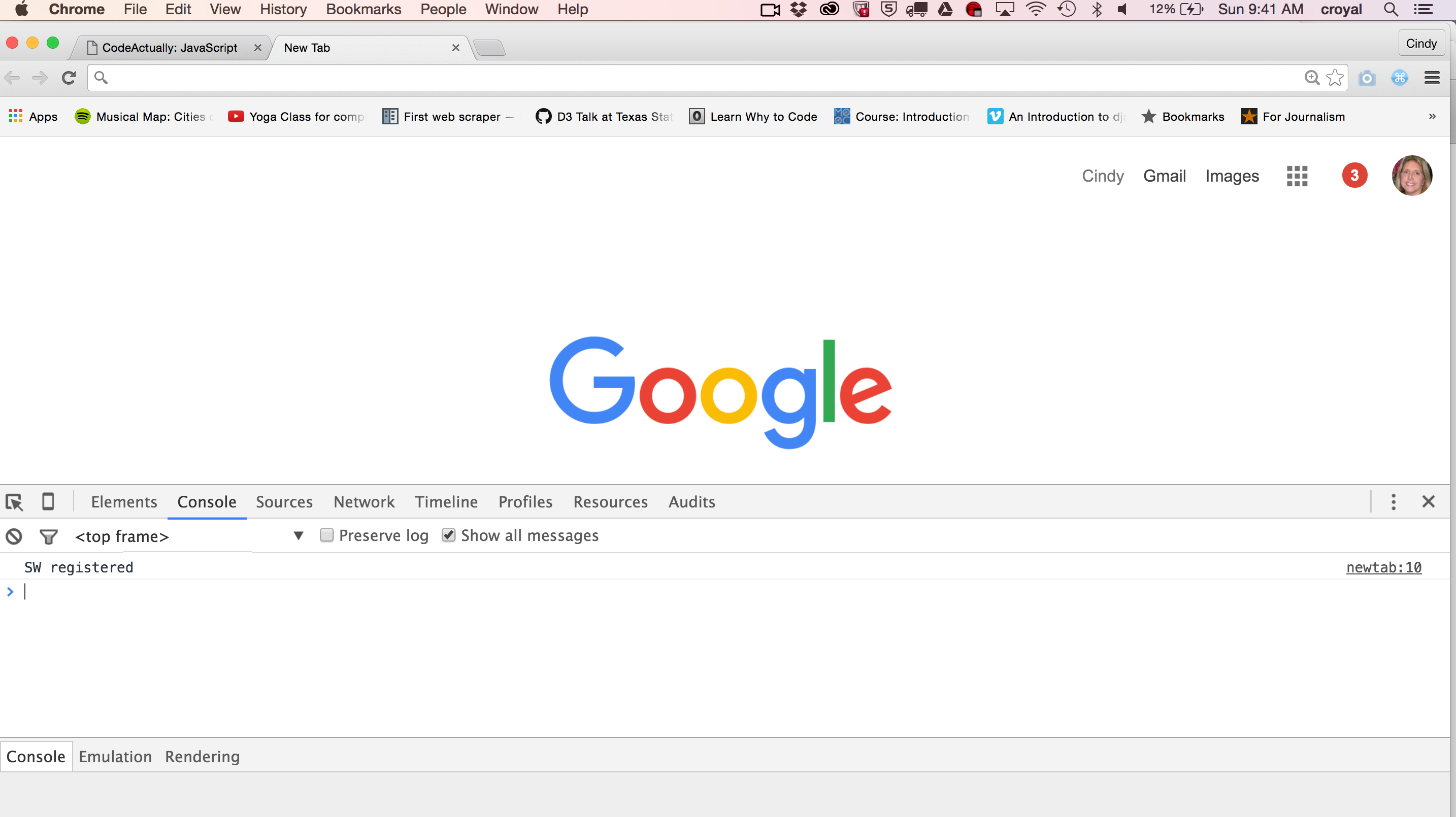 For the first series of exercises, we’ll be practicing in Chrome’s console. This is an environment that let’s you run code and see the result. Later, we will be implementing JavaScript in HTML pages.
