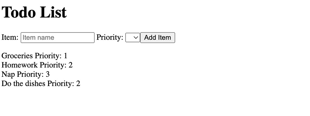 Your app should look like this after you submit a few sample items.