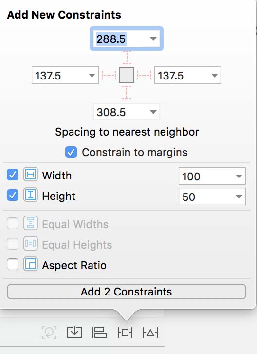 This changes the size of the button. Sometimes adding Constraints causes conflicts. You may get a yellow exclamation point error or see red lines on the Storyboard. You can try to resolve conflicts using the fifth icon or by removing them from the Size Inspector.